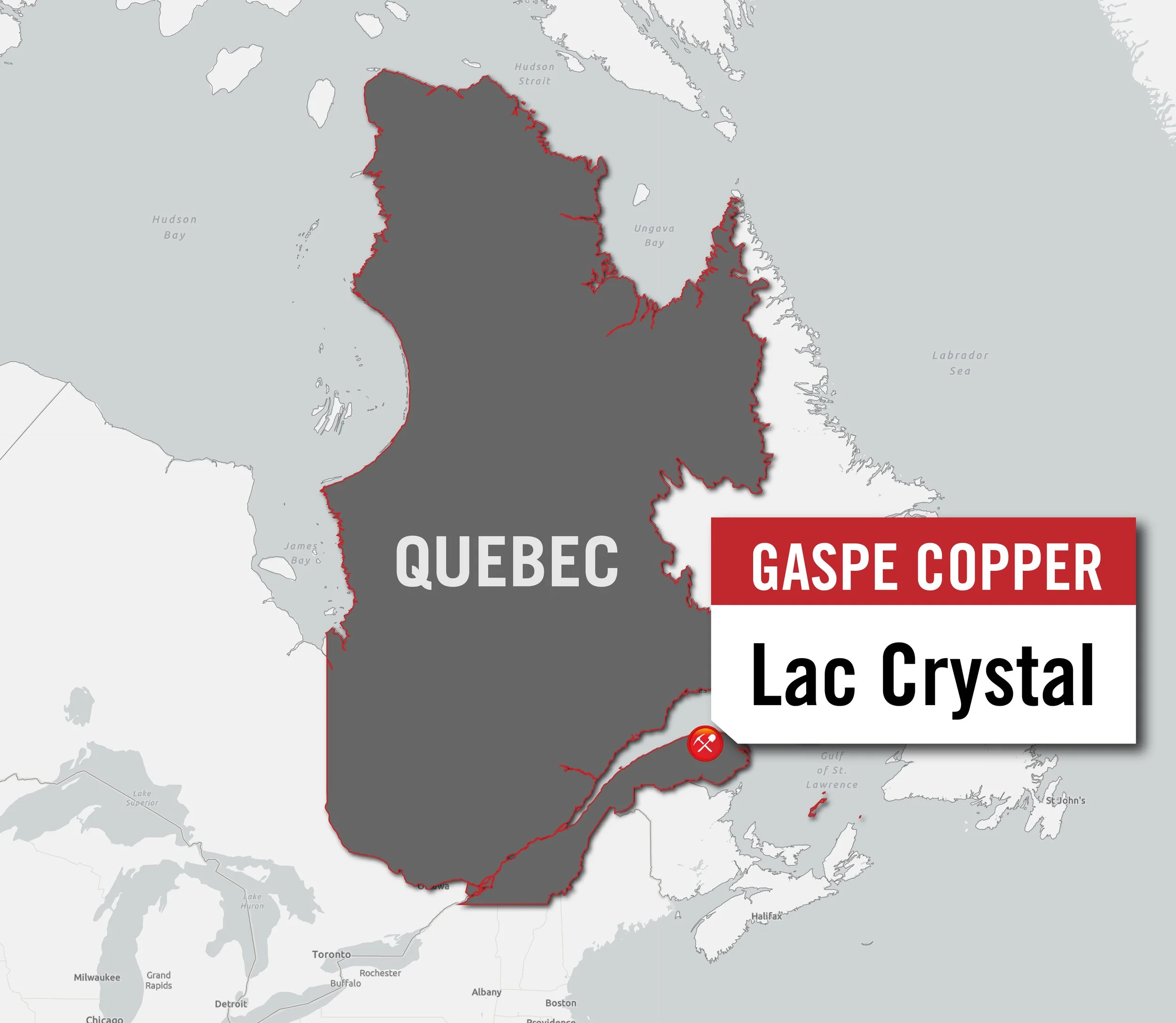 The Lac Crystal Copper Project is a high-grade copper exploration opportunity in Québec’s mining-friendly Gaspé Peninsula. Comprising 8 contiguous claims (470 ha) along a N340° shear corridor which we believe covers the entire 1.2km by 400m strike zone, with depth being open.